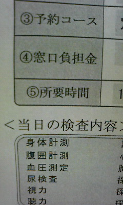 ⑤腹囲。血圧と同じ個室でメジャーで測られる。個室とはいえ、数値を口に出して言われてなんとなく凹む。