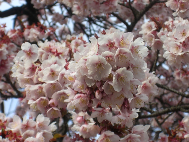 一本だけ早咲きの桜があった。今年は河津桜見に行ってないから、これが今年初の花見。