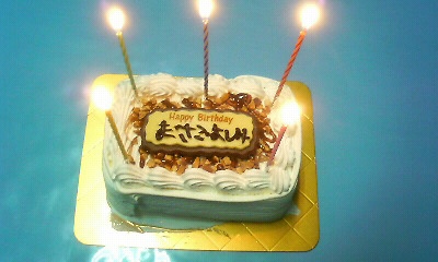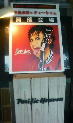 開場して一番に入ったのに、席は抽選。だからみんな来るのが遅かったのね。ステージから近い順にA~Mブロックまでわかれていて、1ブロック3~4人。計50名らしい。こういう時のくじ運って悪い。予想通り一番後ろ。ブルーになりながら、カウンターでドリンクとケーキ引き換え。席についてしばらくしてから、同じMブロックの人がきた。3人いたけど、それぞれ東京・千葉・博多からのお越し。博多だよ!博多!すごい感動しちゃった。イベント始まる前から一番後ろのブロックは和みモード。